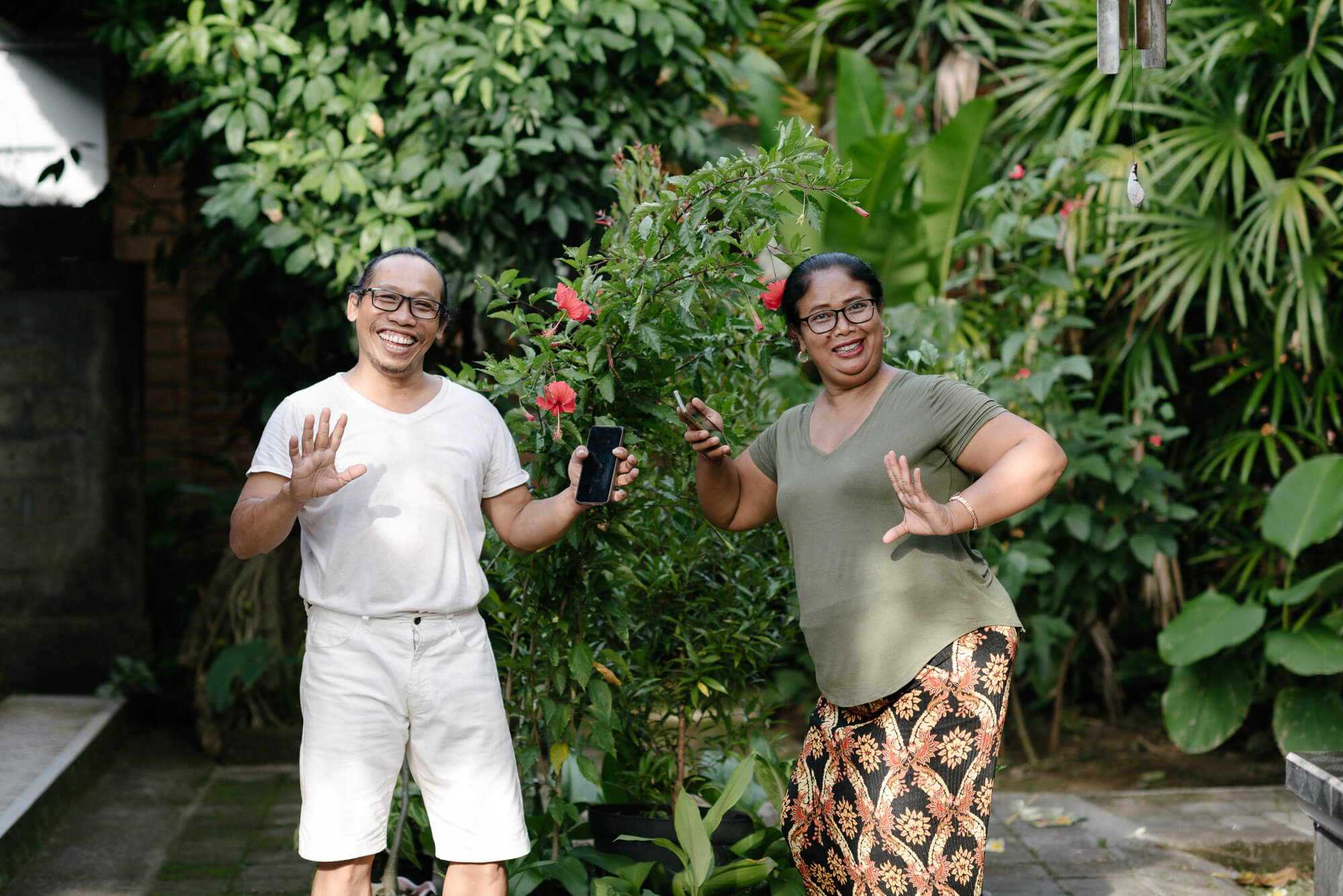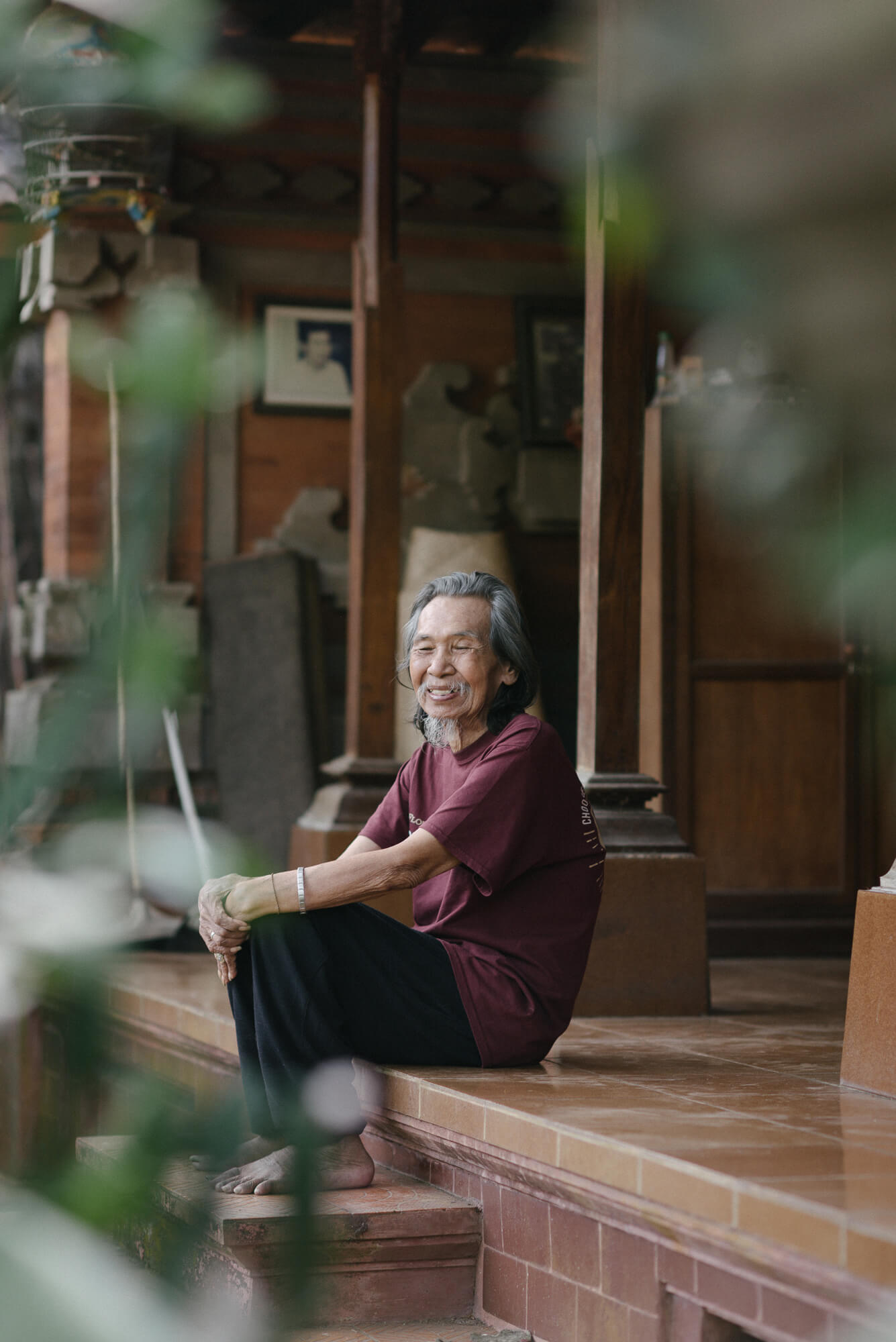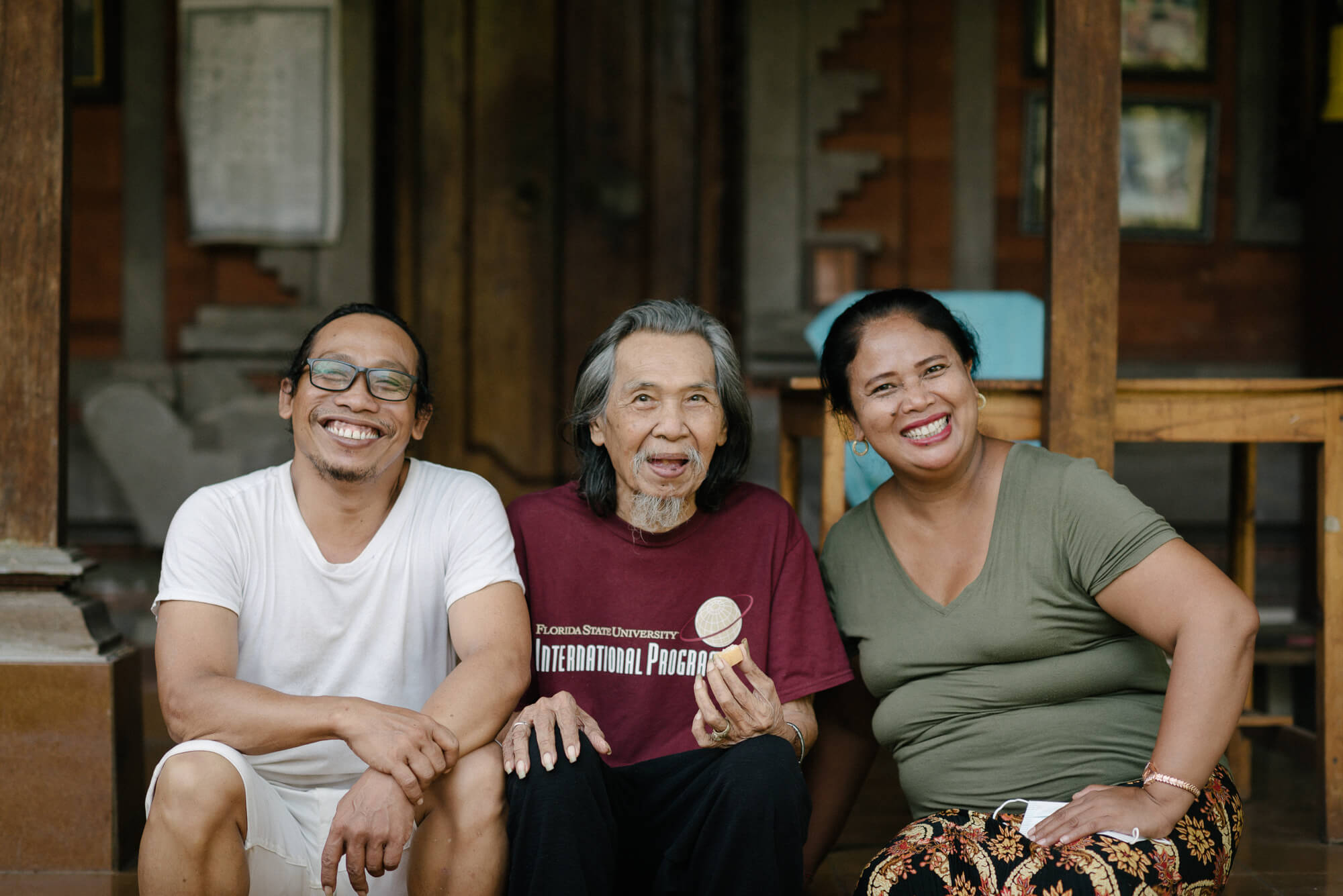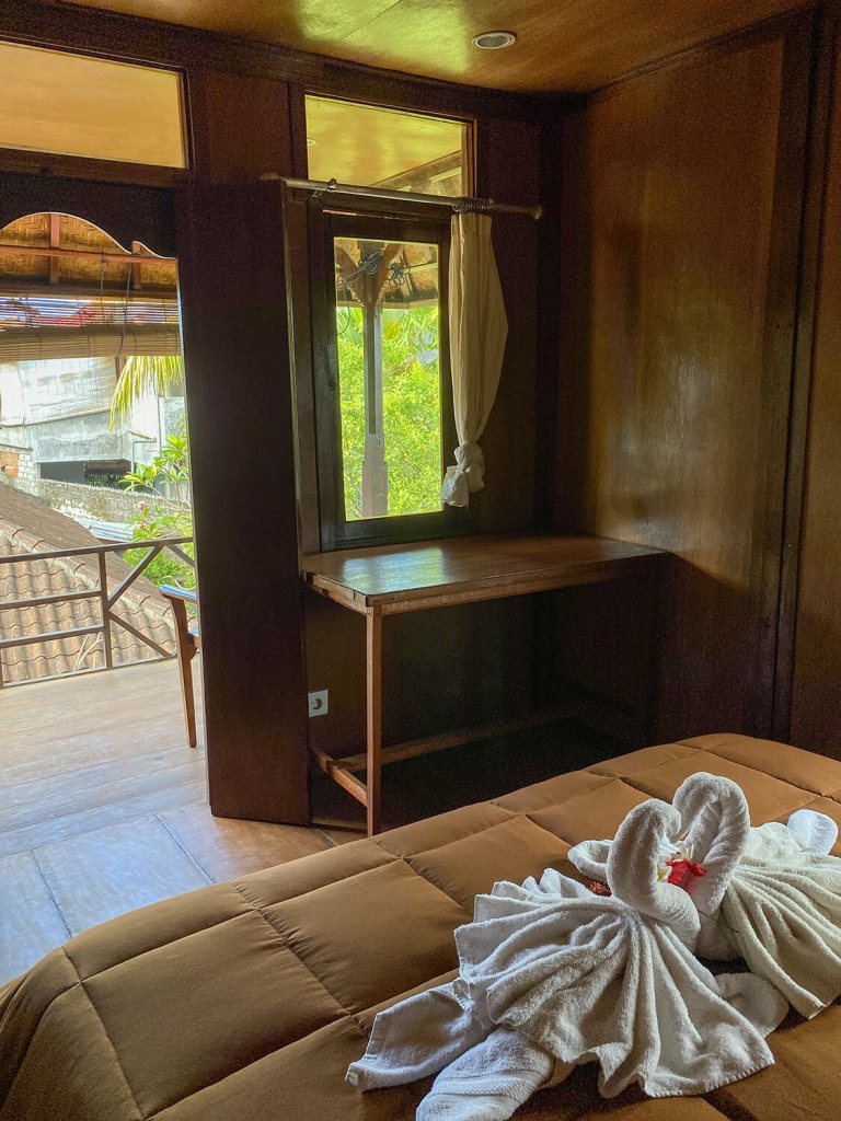 A 40 year old nearby signEntrance view to Jl. Bima to the northKomang blesses Galungan offeringsA small river runs through itThe homestay’s gamelan angklungThe modern cell phone danceKetut Madra flanked by grandsonsPak Ketut on the steps of his homeWater falling at site of first pondokIbu Komang at the sanggahWayan, Madé, Komang, GusdéSculpture near the waterHanoman and Surya by Ketut MadraIbu Komang with sajenThe underused office…Angklung with barongLawn and garden south of the streamPak Ketut with Madé and KomangAngklung lagiSajen lagiKomang bemusedElli waiting for dinnerCrossroads in the gardenBarong MacanAngklung carving$12 a night includes breakfastStream in evening lightCoconut trees in the gardenOne of two houses with kitchenKoi pond next to the 2-story houseBalcony view to the southBli Ketut at 80Upstairs bedroom with balcony